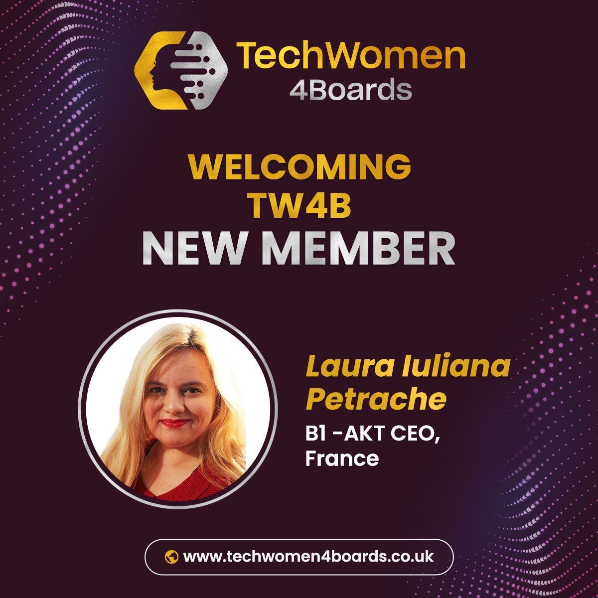 We are proud and honored to share that our founder, Laura Iuliana PETRACHE, has been nominated for the TechWomen4Boards Leadership Award in the category of Policy and Advocacy Impact. This recognition is a tribute to Laura’s relentless work across B1-AKT’s major pillars: policy innovation, intercultural dialogue, gender equality, and sustainable development. Her leadership continues to shape pathways for inclusive and regenerative futures, locally and globally.